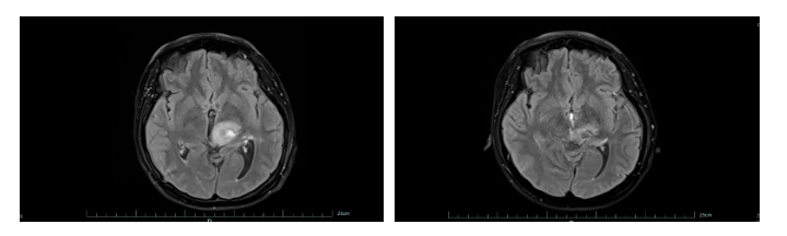 4个月过去了,王女士手麻脚麻症状逐渐加重,东西就拿在手里却感觉不到它的存在,她意识到可能出问题了,在家人的陪伴下前往当地医院就诊。然而检查结果犹如晴天霹雳,丘脑、脑干肿瘤,恶性程度非常高,手术难度大,极有可能下不了手术台。